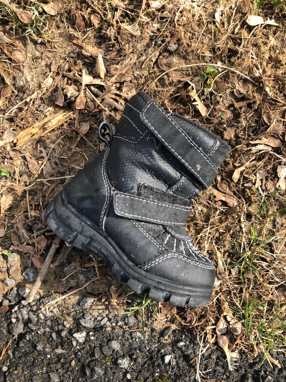 Sometimes at the park in April your mini snow boot just gets away from you even though it hasn’t been icy cold for weeks.
