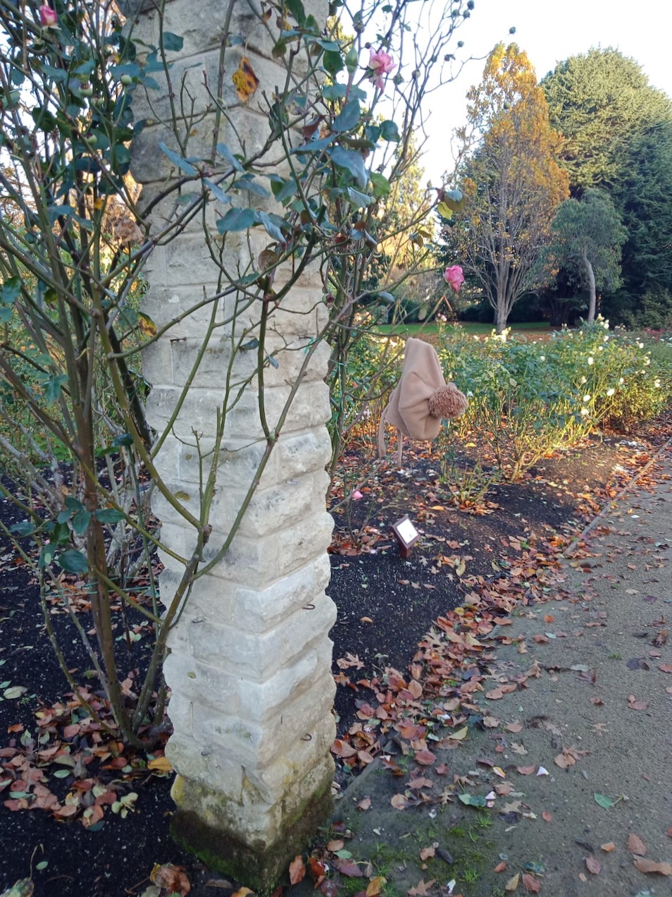 Sometimes along the walkway your wooly cap just gets away from you and into a blooming shrub.